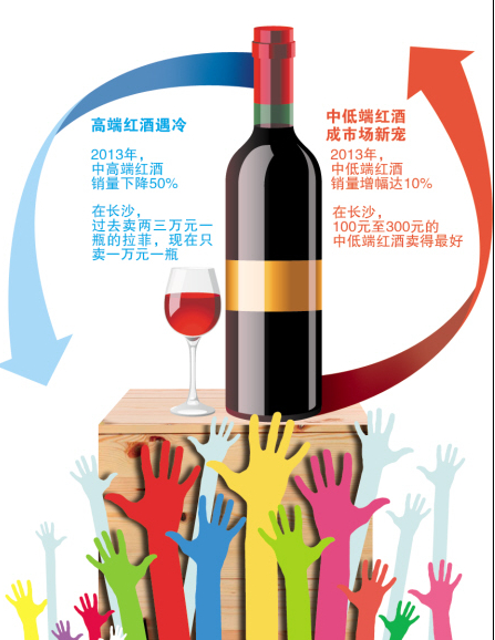 高端红酒寒冬成就了中低端红酒的春天。2013年在高端红酒销量下降50%的情况下,中低端红酒销量增幅达10%。一些外国酒商的销售数字也体现了中低端红酒销量的提升。波尔多酿酒商及中间商Maison Sichel集团表示,其2013年销售额和销售量较2012年增长了30%,消费者对那些“物有所值”的中级价位的红酒表现出了更大的兴趣。